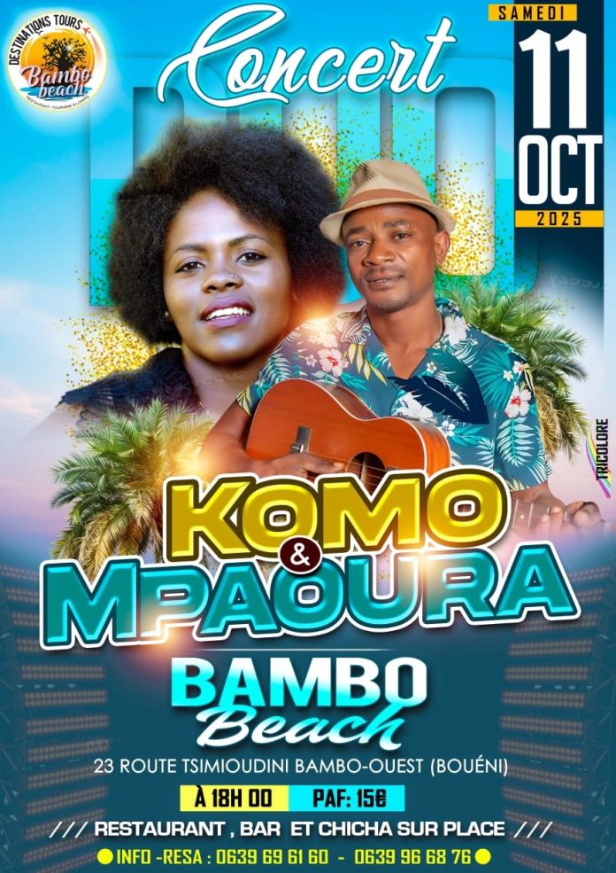 AccueilFil info๐†๐ซ๐š๐ง๐ ๐‚๐จ๐ง๐œ๐ž๐ซ๐ญ ๐šฬ€ ๐๐š๐ฆ๐›๐จ ๐๐ž๐š๐œ๐ก : ๐Š๐Ž๐Œ๐Ž & ๐Œ๐๐€๐Ž๐”๐‘๐€ ๐ž๐ง ๐ฅ๐ข๐ฏ๐ž