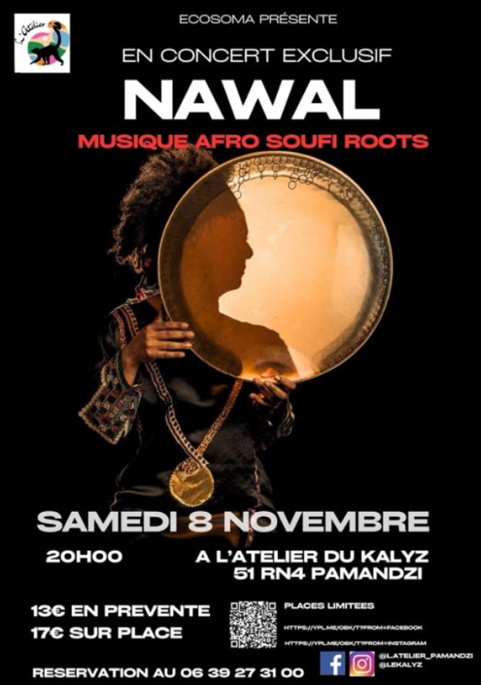 L’Atelier du KALYZ (51 RN4, Pamandzi) offre un écrin parfait pour ce concert : une salle à taille humaine où chaque spectateur pourra ressentir la proximité avec l’artiste, comme dans les veillées soufies traditionnelles. Les places étant limitées, le public est invité à réserver rapidement pour ne pas manquer cette soirée hors du temps.