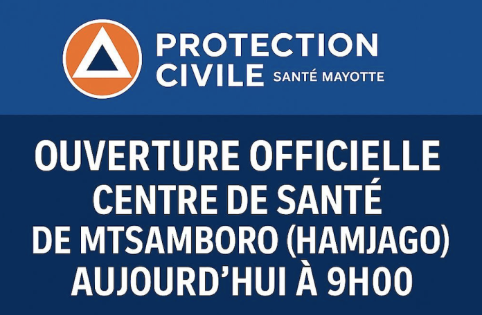 La Commune de Mtsamboro a le plaisir d’informer la population de l’ouverture officielle du Centre de Santé de Mtsamboro (Hamjago) à compter du 3 décembre 2025. Ce nouvel équipement de proximité vient renforcer l’accès aux soins pour les habitants et améliorer l’accompagnement médical au quotidien.