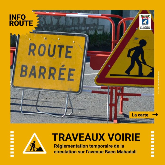 La Ville de Mamoudzou informe la population que la circulation sera temporairement réglementée afin de permettre la réalisation de travaux de voirie sur l’avenue Baco Mahadali.